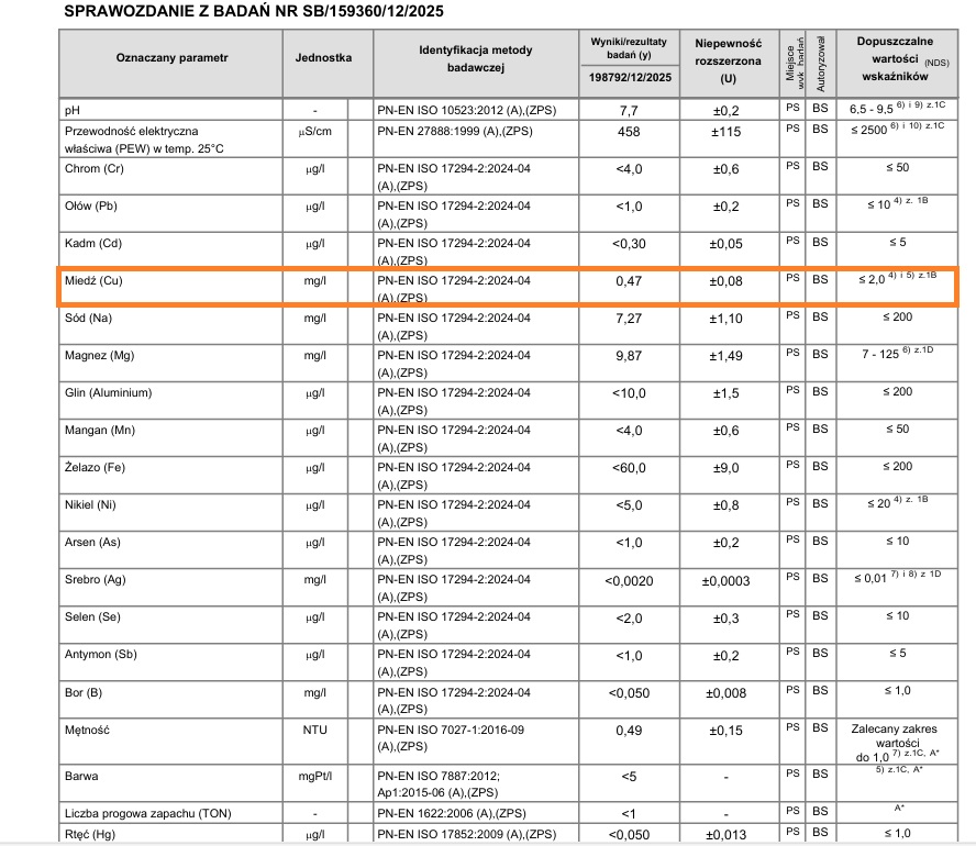 Dbamy o jakość naszych produktów. Nasze butelki również w Polsce przeszły badania migracji pierwiastków do wody po 24h od napełniania. Ich wyniki widoczne są na dwóch ostatnich zdjęciach w galerii. Pierwsze zdjęcie to wartości wody z kranu a drugie po upływie doby w butelce. Obserwujemy większe nasycenie wody miedzią. Warto zwrócić również uwagę na fakt, że ołów, glin, nikiel i rtęć pozostają niewykrywalne.